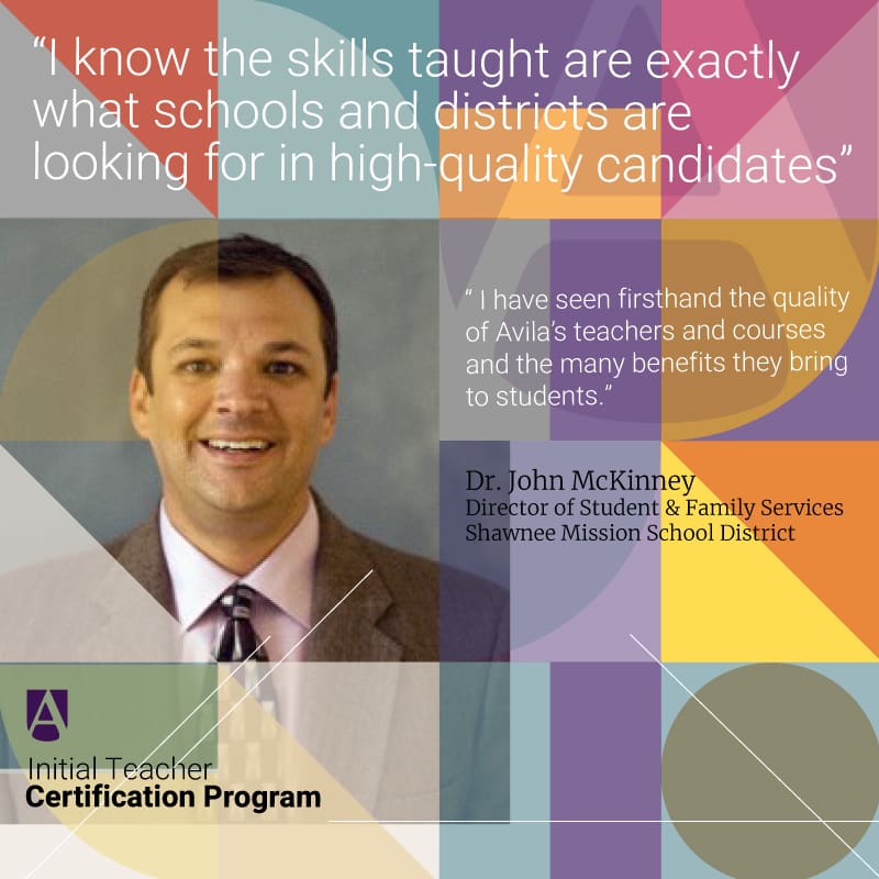 Students admitted to Avila’s Alternative Certification program are eligible to work under a two-year, provisional certification while completing coursework towards earning their initial certification. When the required coursework is completed and the designated Missouri Content Assessment test is passed, the college recommends the student to the state and the individual receives an initial certificate.