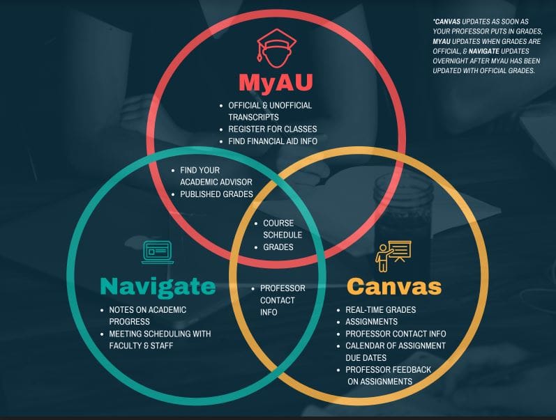 Yes. You can view your grades in Navigate, but for your official transcripts, you will need to log into MyAU. To view real-time updates on your grades and grades for each assignment, log into Canvas.